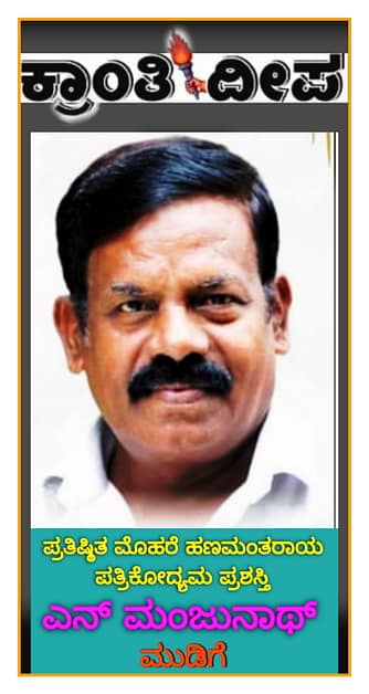ಕನ್ನಡ ಪತ್ರಿಕಾ ರಂಗದ 2021ನೇ ಸಾಲಿನ ಪ್ರತಿಷ್ಠಿತ ಮೊಹರೆ ಹಣಮಂತರಾಯ ಪ್ರಶಸ್ತಿಗೆ ಕರ್ನಾಟಕ ಸರ್ಕಾರ ಶಿವಮೊಗ್ಗದ ಹೆಸರಾಂತ ಕ್ರಾಂತಿದೀಪ ಪತ್ರಿಕೆಯ ಸಂಪಾದಕರಾದ ಎನ್ ಮಂಜುನಾಥ್ ಅವರಿಗೆ ನೀಡಿ ಗೌರವಿಸಿದೆ. ಶಿವಮೊಗ್ಗ ಪತ್ರಿಕಾ ರಂಗದ ಹಿರಿಮೆ ಮತ್ತಷ್ಟು ಎತ್ತರಕ್ಕೆ ಜಿಗಿದಿದೆ. ಪ್ರತಿಷ್ಠಿತ ಮೊಹರೆ ಹಣಮಂತರಾಯ ಪ್ರಶಸ್ತಿಗೆ ಭಾಜನರಾಗಿರುವ ಕಾಂತಿದೀಪ ಪತ್ರಿಕೆಯ ಸಂಪಾದಕರು.ಹಿರಿಯ ಪತ್ರಕರ್ತರಾಗಿರುವ ಎನ್ ಮಂಜುನಾಥ್ ( ಮಂಜಣ್ಣ ) ಅವರಿಗೆ ನನ್ನ ಮತ್ತು ನನ್ನ ಪತ್ರಿಕೆಯ ಬಳಗದ ಹಾಗೂ ಓದುಗರ ಪರವಾಗಿ ಅಭಿನಂದನೆಗಳು. ನಿಮ್ಮ ಮುಂದಿನ ಪತ್ರಿಕಾ ರಂಗದ ಹಾದಿಯಲ್ಲಿ ಇನ್ನಷ್ಟೂ ಪ್ರಶಸ್ತಿಗಳು ನಿಮ್ಮ ಮುಡಿಗೇರಲಿ ಶುಭವಾಗಲಿ ಮಂಜಣ್ಣ.