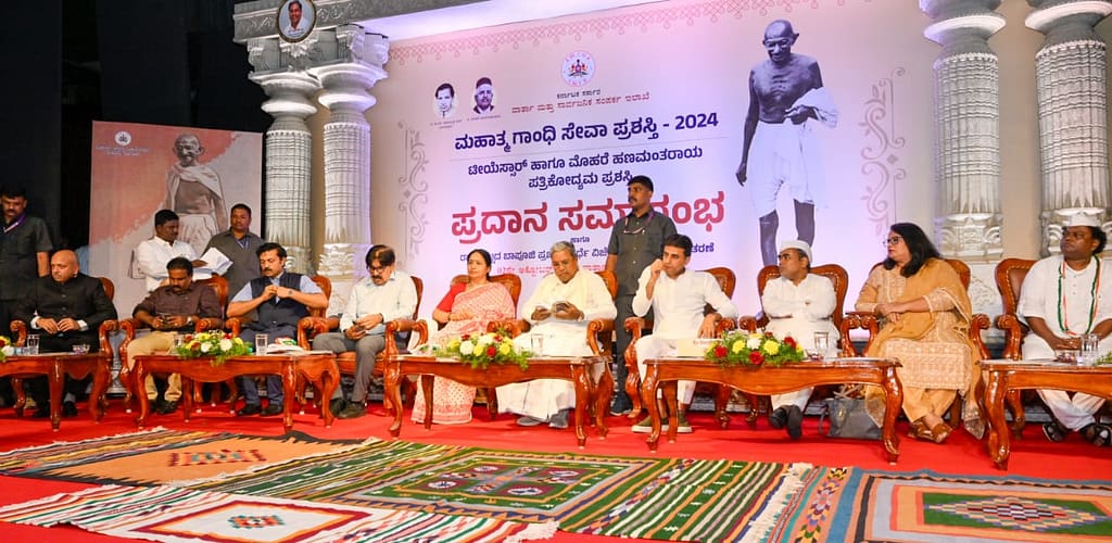 ಇಂದು ಗಾಂಧಿ ಜಯಂತಿ ಅಂಗವಾಗಿ ಮಹಾತ್ಮ ಗಾಂಧೀ ಸೇವಾ ಪ್ರಶಸ್ತಿ, ಟಿಎಸ್ಆರ್ ಪತ್ರಿಕೋದ್ಯಮ ಪ್ರಶಸ್ತಿ, ಮೊಹರೆ ಹಣಮಂತರಾಯ ಪತ್ರಿಕೋದ್ಯಮ ಪ್ರಶಸ್ತಿಗಳನ್ನು ಕೊಡುತ್ತಿದ್ದೇವೆ. ಇಂದು ಯಾರು ಯಾರು ಪ್ರಶಸ್ತಿಗಳನ್ನು ಸ್ವೀಕರಿಸಿದ್ದಾರೋ ಅವರೆಲ್ಲರಿಗೂ ಕೂಡ ನನ್ನ ಅಭಿನಂಧನೆಗಳು.