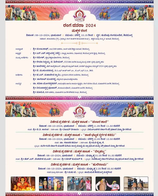 ಶಿವಮೊಗ್ಗ ಅದ್ದೂರಿ ದಸರಾ ಇಂದಿನ ಕಾರ್ಯಕ್ರಮ