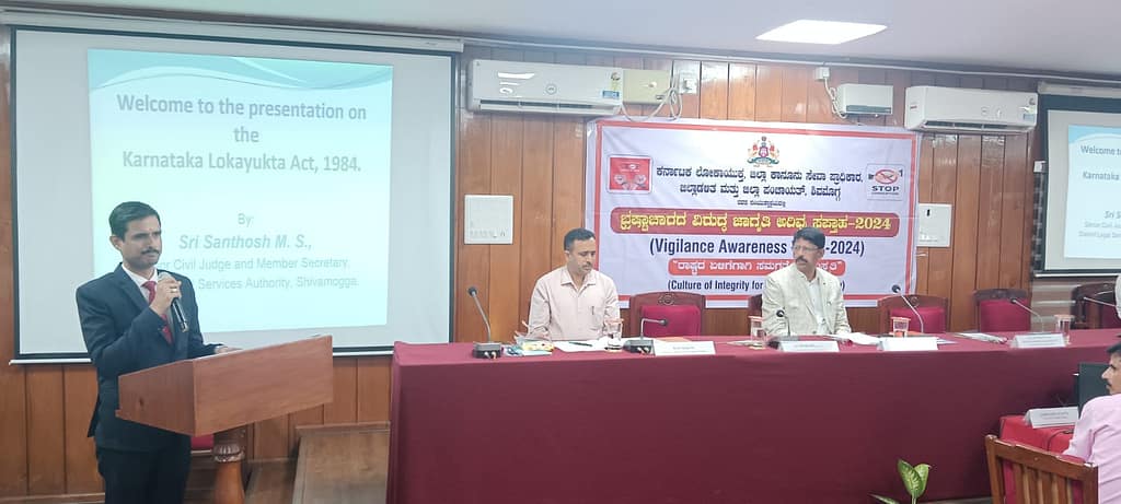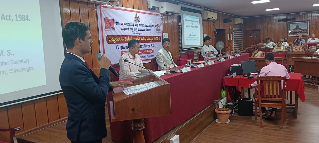 ಕರ್ನಾಟಕ ಲೋಕಾಯುಕ್ತ ಶಿವಮೊಗ್ಗ ಇವರ ವತಿಯಿಂದ ಸೋಮವಾರ ಜಿಲ್ಲಾ ಪಂಚಾಯತ್ ಅಬ್ದುಲ್ ನಜೀರ್ ಸಾಬ್ ಸಭಾಂಗಣದಲ್ಲಿ ಏರ್ಪಡಿಸಲಾಗಿದ್ದ ಭ್ರಷ್ಟಾಚಾರದ ವಿರುದ್ಧ ಜಾಗೃತಿ ಅರಿವು ಸಪ್ತಾಹ ಕಾರ್ಯಕ್ರಮ ಉದ್ಘಾಟಿಸಿ ಅವರು ಮಾತನಾಡಿದರು.