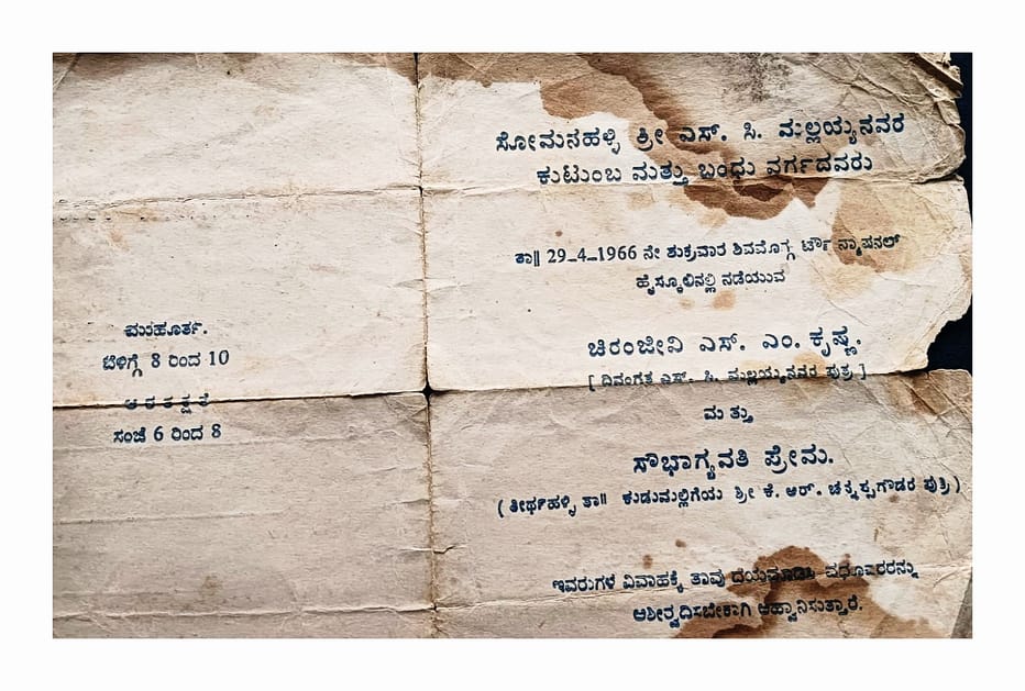 ಶಿವಮೊಗ್ಗದ ನ್ಯಾಷನಲ್ ಹೈಸ್ಕೂಲಿನಲ್ಲಿ ನಡೆದ ಎಸ್.ಎಂ. ಕೃಷ್ಣ ಮದುವೆ. ಆಹ್ವಾನ ಪತ್ರಿಕೆ ವೈರಲ್.