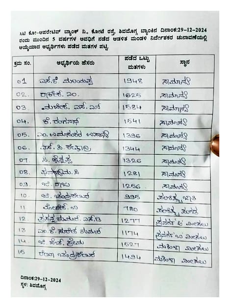 ಅಶ್ವಸೂರ್ಯ/ಶಿವಮೊಗ್ಗ: ಶಿವಮೊಗ್ಗದ ಪ್ರತಿಷ್ಠಿತ “ಸಿಟಿ ಕೋ ಆಪರೇಟಿವ್ ಬ್ಯಾಂಕ್ ಲಿ, 2024 ನೇ ಸಾಲಿನ ನಿರ್ದೇಶಕರ ಚುನಾವಣೆಯು ಡಿಸೆಂಬರ್ “29” ರಂದು ನೆಡೆಯಿತು ಈ ಬಾರಿಯ ಚುನಾವಣೆಯು ಸಾಕಷ್ಟು ಬಲಾ ಬಲದಿಂದ ಕೂಡಿತ್ತು. ಬ್ಯಾಂಕಿನ ಮತದಾನ ಹೊಂದಿದ ಸದಸ್ಯರಲ್ಲಿ ನೂರಕ್ಕೆ 90% ಮತದಾರರು ಹುಮ್ಮಸ್ಸಿನಿಂದ ಮತದಾನದಲ್ಲಿ ಪಾಲ್ಗೊಂಡು ತಮ್ಮ ಅಭ್ಯರ್ಥಿಯ ಪರವಾಗಿ ಮತಚಲಾಯಿಸಿದರು. ಮತದಾನ ನೆಡೆದ ದಿನವೆ ಮತ ಏಣಿಕೆಯ ಪ್ರಕ್ರಿಯೆ ಕೂಡ ರಾತ್ರಿ 10ಗಂಟೆ ಸಯಮಾರಿಗೆ ಪೂರ್ಣಗೊಂಡಿದ್ದು ಅದೇ ಹಳೆಯ ಮುಖಗಳ ಜೊತೆಗೆ ನಾಲ್ಕು ಮಂದಿ ಹೊಸ ಮುಖಗಳು ಈ ಬಾರಿಯ ಚುನಾವಣೆಯಲ್ಲಿ ಗೆಲುವು ಸಾಧಿಸಿದ್ದಾರೆ.