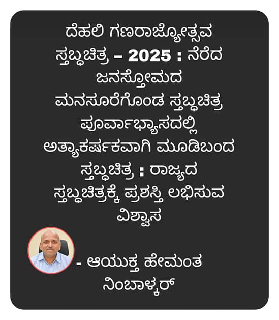 ದೆಹಲಿ ಗಣರಾಜ್ಯೋತ್ಸವ ಸ್ತಬ್ಧಚಿತ್ರ – 2025 : ನೆರೆದ ಜನಸ್ತೋಮವನ್ನು ಆಕರ್ಷಿಸಿ ಮನಸೂರೆಗೊಂಡ ರಾಜ್ಯದ ಸ್ತಬ್ಧಚಿತ್ರ.