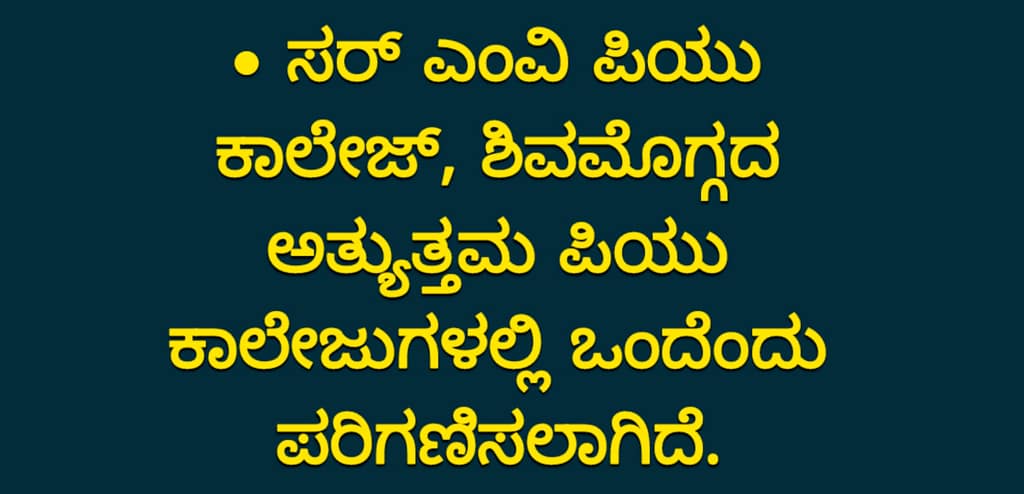 ಶಿವಮೊಗ್ಗ: ಮಲೆನಾಡ ಮಡಿಲಲ್ಲಿ ನಮ್ಮ ಹೆಮ್ಮೆಯ ವಿದ್ಯಾಸಂಸ್ಥೆ ಸರ್ ಎಂವಿ ಪಿಯು ಕಾಲೆಜ್ ವಿದ್ಯಾರ್ಥಿಗಳ ಭವಿಷ್ಯ ರೂಪಿಸುವ ಕೇಂದ್ರವಾಗಿದೆ.