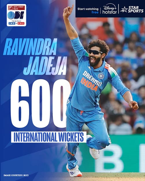 ಈ ಪಂದ್ಯದಲ್ಲಿ ಮೂರು ವಿಕೆಟ್ ಗಳಿಸಿ ಭಾರತ ತಂಡದ ಪರ 600 ವಿಕೆಟ್ ಗಳಿಸಿದವರ ಸಾಲಿಗೆ ಜಡೇಜ ಸೇರ್ಪಡೆಯಾದರು
