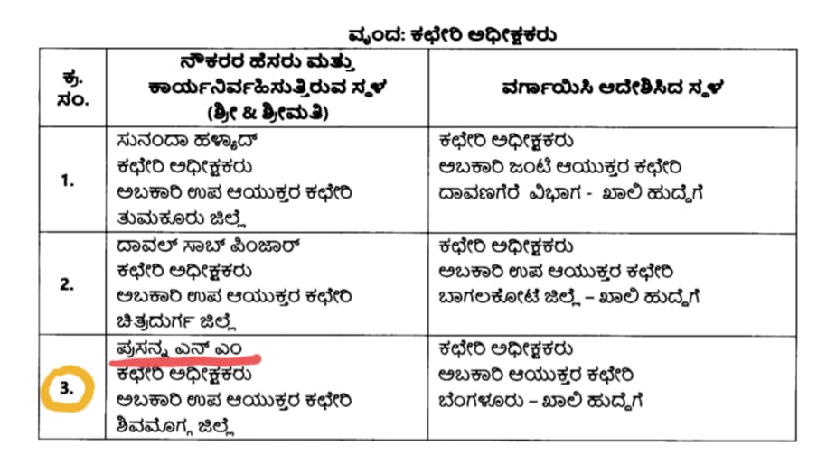 ಶಿವಮೊಗ್ಗ ಜಿಲ್ಲಾ ಅಬಕಾರಿ ಕಛೇರಿಯಲ್ಲಿ ಮಹಾ ಭ್ರಷ್ಟ ಪ್ರಸನ್ನ.!ವರ್ಗಾವಣೆ ಅದರು ಮತ್ತದೆ ಸ್ಥಳದಲ್ಲಿ ಠಿಕಾಣಿ.!ಮೊದಲೇ ಶನಿ ಇದ್ದು ಹೊದ ಮನೆಗೆ ಮತ್ತೆ ಶನಿ ಹೊಕ್ಕಂತಾಯಿತು..!