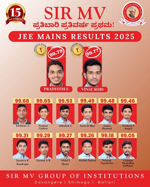 ಕಾಲೇಜಿನ ಶ್ರೇಷ್ಠ ದರ್ಜೆಯ ಅಧ್ಯಾಪಕರು, ಸಮಗ್ರ ಮತ್ತು ಆಧುನಿಕ ಶಿಕ್ಷಣ ವಿಧಾನ ಮತ್ತು ಸೌಲಭ್ಯಗಳಿಂದ ಸರ್ಎಮ್ವಿ ಕಾಲೇಜಿನ ವಿದ್ಯಾರ್ಥಿಗಳು ಪ್ರತಿ ವರ್ಷ ಅತ್ಯುತ್ತಮ ಫಲಿತಾಂಶಗಳನ್ನು ಸಾಧಿಸುತ್ತಿದ್ದಾರೆ. ಕೆಲವು ಉದಾಹರಣೆಗಳು ಇಲ್ಲಿವೆ…👇