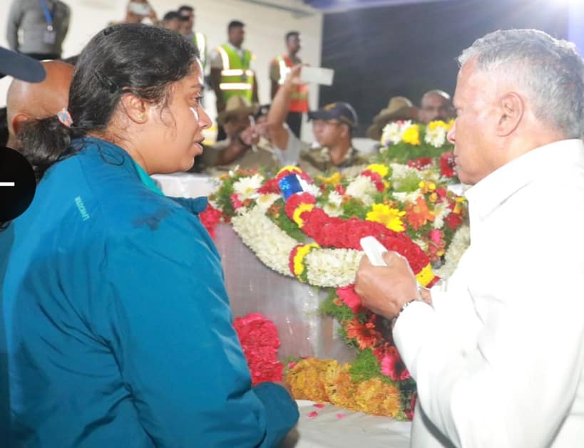 ಇದೇ ವೇಳೆ ಪಾರ್ಥಿವ ಶರೀರಕ್ಕೆ ಗೌರವ ನಮನ ಸಲ್ಲಿಸಿದ,ಕೇಂದ್ರ ಸಚಿವ ವಿ ಸೋಮಣ್ಣ ಅವರು ದುಃಖ ತಪ್ತ ಕುಟುಂಬಸ್ಥರಿಗೆ ಸಾಂತ್ವನ ಹೇಳಿದರು ಈ ಸಂಧರ್ಭದಲ್ಲಿ ದಕ್ಷಿಣ ಕ್ಷೇತ್ರದ ಬಿಜೆಪಿ ಸಂಸದ ತೇಜಸ್ವಿ ಸೂರ್ಯ ಕೂಡ ಇದ್ದರೂ.