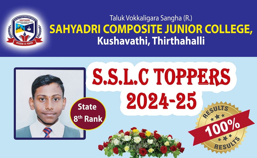 ತೀರ್ಥಹಳ್ಳಿ: ಪ್ರಸಿದ್ಧ ಸಹ್ಯಾದ್ರಿ ಶಿಕ್ಷಣ ಸಂಸ್ಥೆಗೆ ಈ ಬಾರಿಯು ಎಸ್ಎಸ್ಎಲ್ಸಿ ಯಲ್ಲಿ 100ಕ್ಕೆ 100 ಫಲಿತಾಂಶ.
