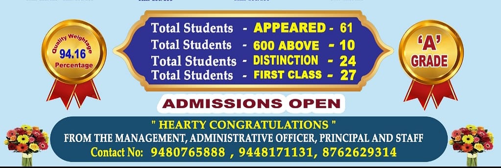 ರಾಜ್ಯ ಮಟ್ಟದ ರ್ಯಾಂಕ್ ಪಡೆಯುವುದರೊಂದಿಗೆ ಸಂಸ್ಥೆಗೆ ಶೇ 100 ಫಲಿತಾಂಶ ನೀಡುವುದರ ಮೂಲಕ ತಾಲ್ಲೂಕಿನ ಪ್ರೌಢಶಾಲೆಗಳಲ್ಲಿ ಗುಣಾತ್ಮಕ ಫಲಿತಾಂಶದಲ್ಲಿ ಮೇಲುಗೈ ಸಾಧಿಸಿದೆ.