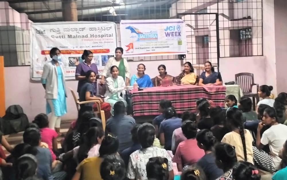 ಜೆಸಿಐ ಶಿವಮೊಗ್ಗ ಭಾವನದ ವತಿಯಿಂದ ಬಾಪೂಜಿ ನಗರದ ಕೃಷ್ಣಪ್ಪ ಮಹಿಳಾ ಹಾಸ್ಟೆಲ್ ನ ವಿದ್ಯಾರ್ಥಿಗಳು ಹಾಗೂ ಮಹಿಳೆಯರಿಗಾಗಿ ಗುತ್ತಿ ಮಲ್ನಾಡ್ ಆಸ್ಪತ್ರೆಯ ಸಹಕಾರದಲ್ಲಿ ಆರೋಗ್ಯ ಅರಿವು ಹಾಗೂ ಆರೋಗ್ಯ ತಪಾಸಣಾ ಶಿಬಿರವನ್ನು ಏರ್ಪಡಿಸಲಾಗಿತ್ತು.