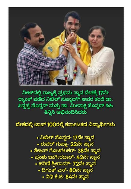 ದೇಶದ ಟಾಪ್ 100 ರಲ್ಲಿ ನಿಖಿಲ್ 17 ನೇ ರ್ಯಾಂಕ್ ಪಡೆದಿದ್ದಾರೆ.