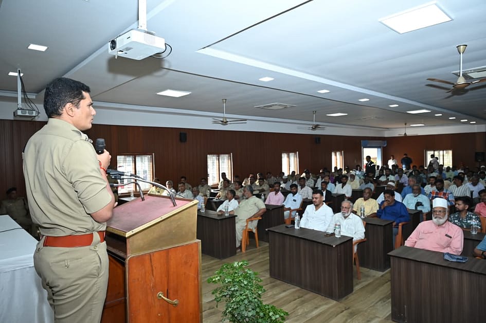 ಅಶ್ವಸೂರ್ಯ/ಶಿವಮೊಗ್ಗ : ಮಿಥುನ್ ಕುಮಾರ್ ಜಿ.ಕೆ. ಐ.ಪಿ.ಎಸ್, ಪೊಲೀಸ್ ಅಧೀಕ್ಷಕರು, ಶಿವಮೊಗ್ಗ ಜಿಲ್ಲೆ ರವರ ನೇತೃತ್ವದಲ್ಲಿ, ಶಿವಮೊಗ್ಗ ನಗರದ ಡಿಎಆರ್ ಪೊಲೀಸ್ ಸಭಾಂಗಣದಲ್ಲಿ ಶಾಂತಿ ಸಭೆಯನ್ನು ಆಯೋಜಿಸಿ ಈ ಕೆಳಕಂಡ ಸಲಹೆ ಸೂಚನೆಗಳನ್ನು ನೀಡಿರುತ್ತಾರೆ.