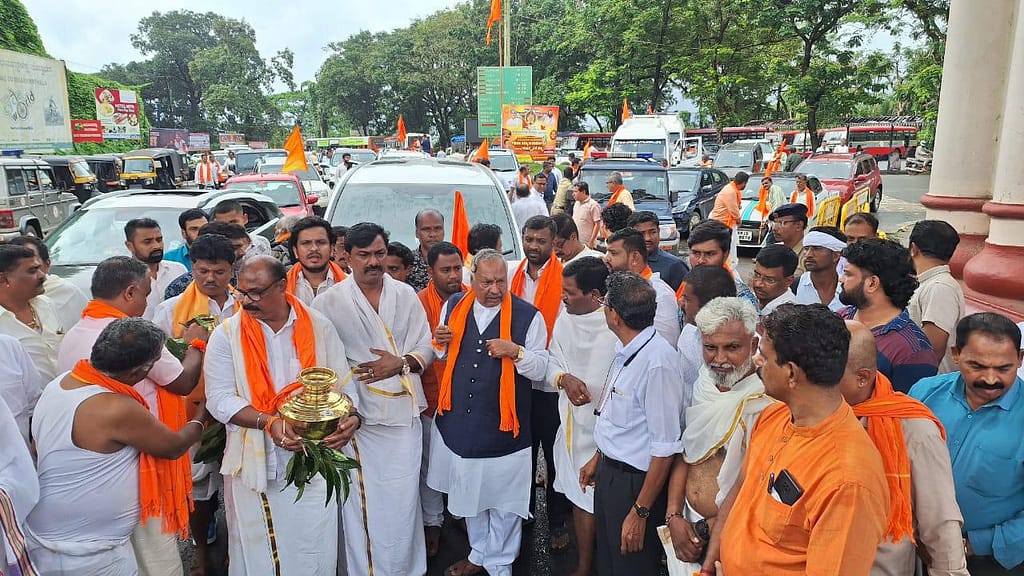 ಈ ವೇಳೆ ಈಶ್ವರಪ್ಪ ಅವರಿಗೆ ದೇವಸ್ಥಾನದ ವತಿಯಿಂದ ಶಾಲು ಹೊದಿಸಿ ಗೌರವ ಸಲ್ಲಿಕೆ ಮಾಡಲಾಯಿತು. ಜಾಥದ ಜೊತೆಗೆ ತುಂಗಾ-ಗಂಗಾ-ನೇತ್ರಾವತಿಯ ಪವಿತ್ರ ನದಿಯಿಂದ ನೀರನ್ನು ತರಲಾಗಿದ್ದು, ಧರ್ಮಸ್ಥಳದಲ್ಲಿ ಮೂರು ನದಿಯ ನೀರು ಪ್ರೋಕ್ಷಣೆ ಮಾಡಲಾಗಿದೆ.