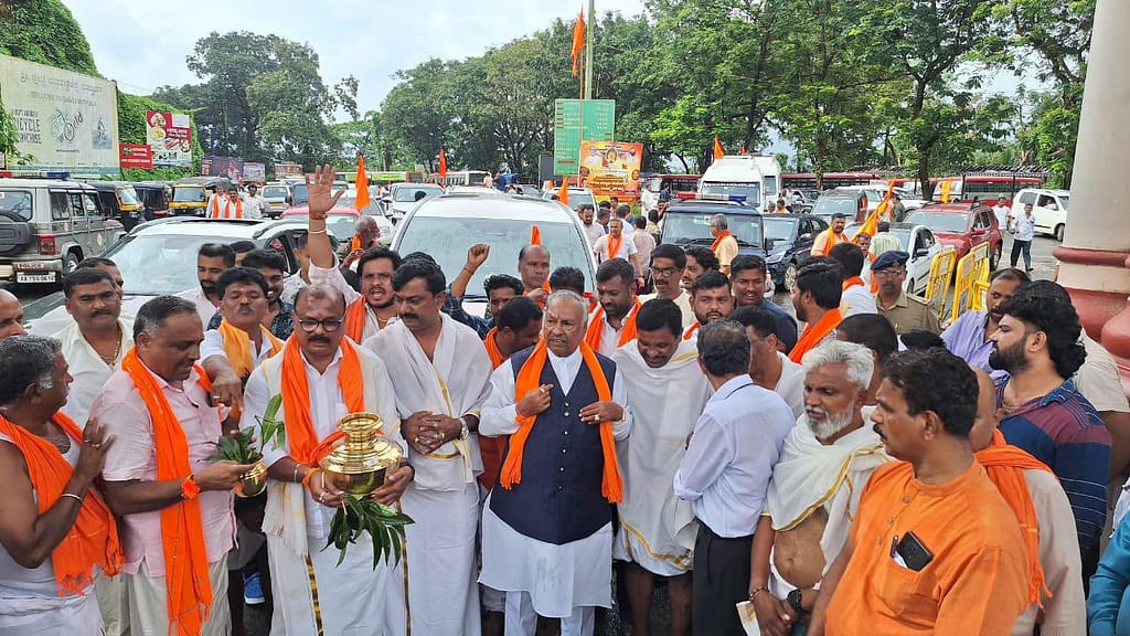 ನಾವು ಧರ್ಮಸ್ಥಳ ಶುದ್ಧಿಕರಣ ಮಾಡಲು ಬಂದಿದ್ದೇವೆ. ಕಾಶಿಯಿಂದ ಗಂಗಾ ಜಲ, ಶಿವಮೊಗ್ಗದಿಂದ ತುಂಗಾ ಜಲ ಧರ್ಮಸ್ಥಳದಿಂದ ನೇತ್ರಾವತಿಯ ಜಲವನ್ನು ತಂದಿದ್ದೇವೆ. ರಸ್ತೆಯಲ್ಲಿ ಪ್ರೋಕ್ಷಣೆ ಮಾಡಿ ಶುದ್ಧ ಮಾಡುತ್ತೇವೆ. ಅಂದೇ ಇವರೆನ್ನೆಲ್ಲಾ ಅರೆಸ್ಟ್ ಮಾಡಿ ಒದ್ದು ಒಳಗೆ ಹಾಕಿದಿದ್ರೆ ಈ ಮಟ್ಟಿಗೆ ಈ ವಿಚಾರ ಬೆಳೆಯುತ್ತಿರಲಿಲ್ಲ. ಈಗ ಅವರ ಬಾಯಲ್ಲೇ ಎಲ್ಲಾ ಸತ್ಯ ಹೊರಬರುತ್ತಿದೆ. ಸರ್ಕಾರ ಇವರನ್ನು ಇಲ್ಲಿವರೆಗೆ ಬಿಟ್ಟದ್ದೇ ತಪ್ಪು. ವಿದೇಶಿ ಹಣ ಬಂದಿದೆ, ರಾಷ್ಟ್ರದ್ರೋಹಿಗಳು ಇದರಲ್ಲಿ ಕೈ ಜೋಡಿಸಿದ್ದಾರೆ.