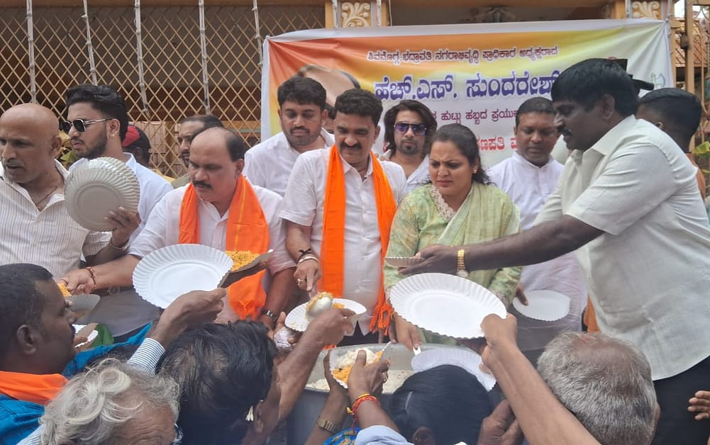 ಮೆರವಣಿಗೆಯಲ್ಲಿ ಭಾಗವಹಿಸುವ ಭಕ್ತರಿಗಾಗಿ ಕಳೆದ ಐದು ವರ್ಷದಿಂದ ಅನ್ನಸಂತರ್ಪಣೆ ಕಾರ್ಯಕ್ರಮವನ್ನು ಹಮ್ಮಿಕೊಂಡು ಬಂದಿರುವ ಕಾಂಗ್ರೆಸ್ ಪಕ್ಷದ ಪ್ರಮುಖ ನಾಯಕರು, ಹಾಲಿ ಶಿವಮೊಗ್ಗ ಭದ್ರಾವತಿ ನಗರಾಭಿವೃದ್ಧಿ ಪ್ರಾಧಿಕಾರದ (ಸೂಡಾ) ಅಧ್ಯಕ್ಷರಾದ ಹೆಚ್ ಎಸ್ ಸುಂದರೇಶ್ ಅವರು ಈ ಬಾರಿಯು ಸುಮಾರು 10,000 ಮಂದಿ ಭಕ್ತರಿಗೆ ಪ್ರತಿ ಸಲದಂತೆ ಈ ಬಾರಿಯು ಅನ್ನಸಂತರ್ಪಣೆ ಕಾರ್ಯಕ್ರಮವನ್ನು ಏರ್ಪಡಿಸಿದ್ದಾರೆ.