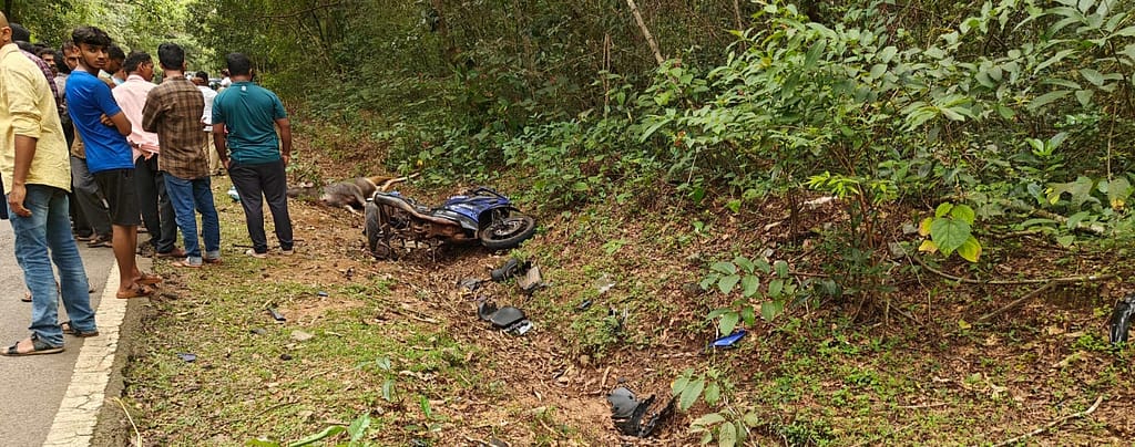 “ಶ್ರೀ ಬ್ರಾಹ್ಮಿ ದುರ್ಗಾಪರಮೇಶ್ವರಿ” ದೇವಸ್ಥಾನಕ್ಕೆ ತೆರಳಿ ದೇವಿಯ ದರ್ಶನ ಪಡೆದು ವಾಪಸಾಗುತ್ತಿರುವಾಗ ತಾರೆಕೊಡ್ಲು ಬಳಿ ಏಕಾಏಕಿ ದೊಡ್ಡ ಕಡೆವೆಯೊಂದು ಬೈಕಿಗೆ ಅಡ್ಡ ಬಂದಿದ್ದು, ಬೈಕ್ ಅದಕ್ಕೆ ಢಿಕ್ಕಿ ಹೊಡೆದು ಪಲ್ಟಿಯಾಯಿತು. ಬೈಕ್ ನಜ್ಜು ನುಜ್ಜಾಗಿದೆ. ಕಡವೆ ಕೂಡ ಸ್ಥಳದಲ್ಲೇ ಮೃತಪಟ್ಟಿದೆ.