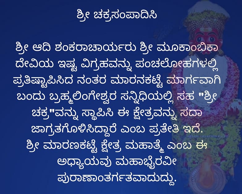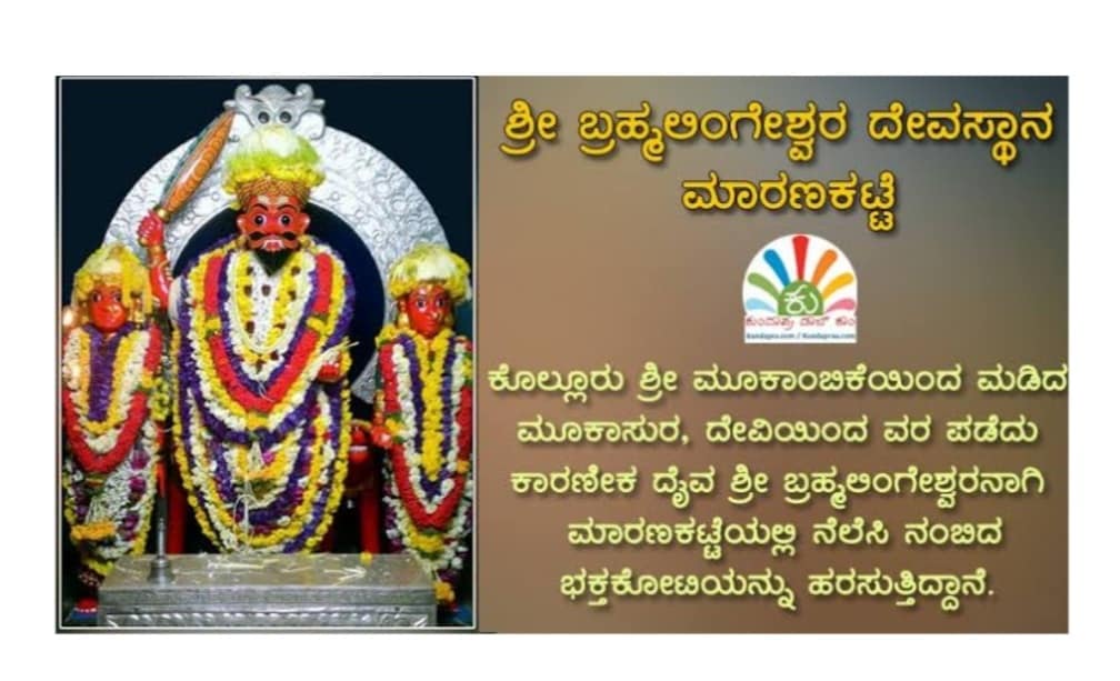 ತುಳುನಾಡ ಜನರ ಆರಾಧ್ಯ ದೈವ , ಮಕರ ಸಂಕ್ರಮಣ ದಿನದಂದು ವಿಜೃಂಭಣೆಯಿಂದ ಪೂಜೆಗೊಳ್ಳುವ ದೇವ , ಮೂಲೋಕದೊಡತಿ ಮೂಕಾಂಬಿಕೆಯಿಂದ ಮಡಿದು ಭೂಲೋಕದ ಧರೆಯಲ್ಲಿ ಕಾರಣೀಕ ದೈವವಾಗಿ ಮಾರಣಕಟ್ಟೆಯ ಧರೆಯಲಿ ನೆಲೆಸಿ ನಿಂದವನೇ ಶ್ರೀ ಬ್ರಹ್ಮಲಿಂಗೇಶ್ವರ ದೇವರು