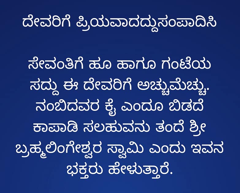 ಹೀಗೆ ಮೂಕಾಸುರನು ಅಸುರನಾದರೂ ಸಹ ಶ್ರೀ ದೇವಿಯಿಂದ ವರವನ್ನು ಪಡೆದು “ಶ್ರೀ ಬ್ರಹ್ಮಲಿಂಗೇಶ್ವರ ಸ್ವಾಮಿ” ಎಂದು ಹೆಸರು ಪಡೆದುಕೊಂಡನು.