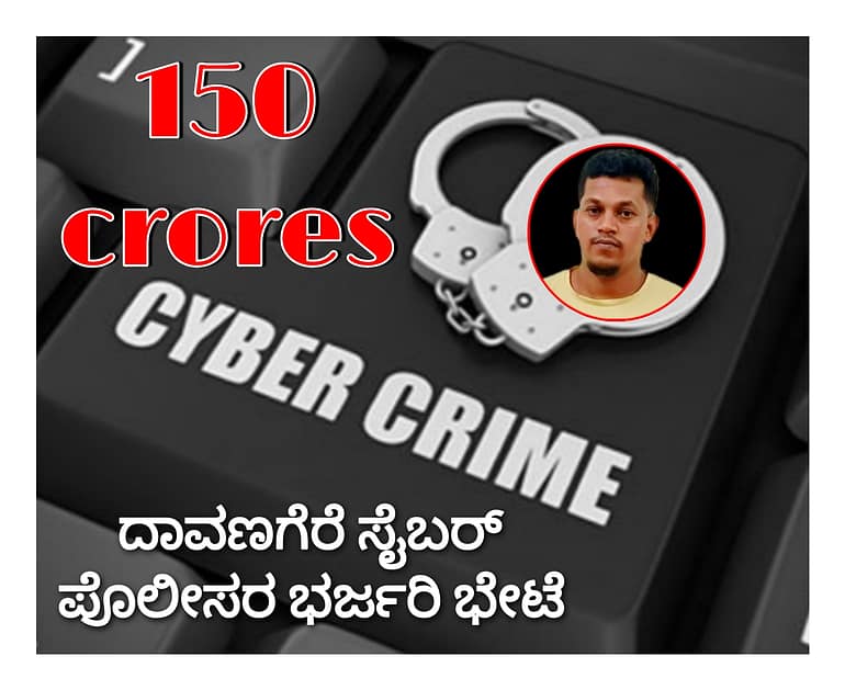 ದಾವಣಗೆರೆ : ರಾಷ್ಟ್ರಾದ್ಯಂತ ಹಲವರ ಬ್ಯಾಂಕ್ ಖಾತೆಗಳಿಂದ 150 ಕೋಟಿಗೂ ಅಧಿಕ ಹಣವನ್ನು ಎಗರಿಸಿದ್ದ ಸೈಬರ್ ವಂಚಕ ಅರೆಸ್ಟ್.! ಇನ್ನಿಬ್ಬರಿಗಾಗಿ ಶೋಧ.