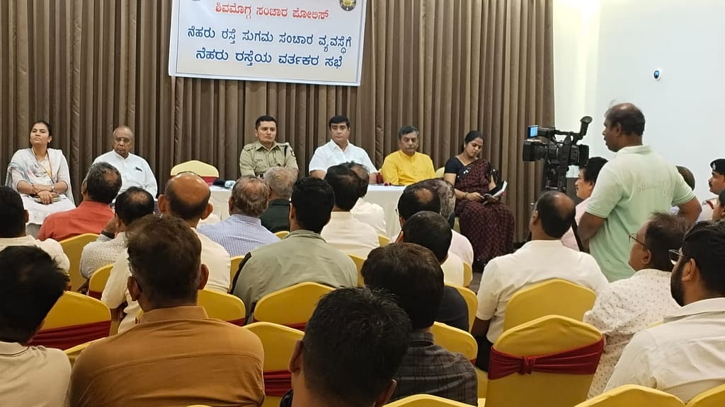 ಅಶ್ವಸೂರ್ಯ/ಶಿವಮೊಗ್ಗ : ನ,12 ರಂದು ಶಿವಮೊಗ್ಗ ನಗರದ ಶುಭಂ ಹೋಟೆಲ್ ಹಾಲ್ ನಲ್ಲಿ ಮಿಥುನ್ ಕುಮಾರ್ ಜಿ.ಕೆ. ಐಪಿಎಸ್, ಮಾನ್ಯ ಪೊಲೀಸ್ ಅಧೀಕ್ಷಕರು, ಶಿವಮೊಗ್ಗ ಜಿಲ್ಲೆ, ರವರ ನೇತೃತ್ವದಲ್ಲಿ, ನೆಹರೂ ರಸ್ತೆ ಸುಗಮ ಸಂಚಾರ ವ್ಯವಸ್ಥೆ ಗೆ ಸಂಬಂಧಿಸಿದಂತೆ ನೆಹರು ರಸ್ತೆಯ ವರ್ತಕರ ಸಭೆಯನ್ನು ಹಮ್ಮಿಕೊಂಡಿರುತ್ತದೆ. ಸದರಿ ಸಭೆಯಲ್ಲಿ ಹಾಜರಿದ್ದವರ ಕುರಿತು ಮಾನ್ಯ ಪೊಲೀಸ್ ಅಧೀಕ್ಷಕರು, ಈ ಕೆಳಕಂಡಂತೆ ಮಾತನಾಡಿರುತ್ತಾರೆ.
