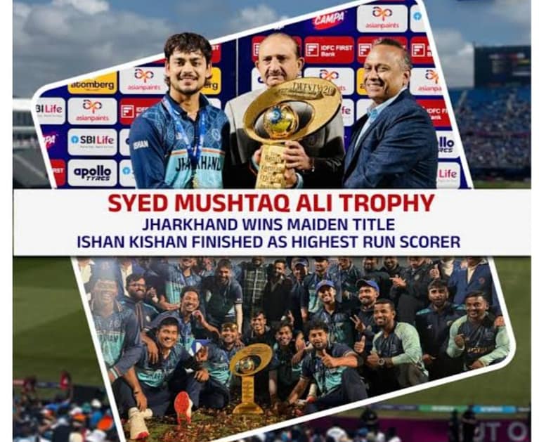 ಜಾರ್ಖಂಡ್ ತಂಡವು ಇತ್ತೀಚೆಗೆ ನಡೆದ 2025ರ ಸೈಯದ್ ಮುಷ್ತಾಕ್ ಅಲಿ ಟ್ರೋಫಿಯನ್ನು ಮೊದಲ ಬಾರಿಗೆ ಗೆದ್ದು ಇತಿಹಾಸ ಸೃಷ್ಟಿಸಿದೆ, ಫೈನಲ್ನಲ್ಲಿ ಹರಿಯಾಣ ತಂಡವನ್ನು 69 ರನ್ಗಳ ಅಂತರದಿಂದ ಸೋಲಿಸಿ ಚಾಂಪಿಯನ್ ಪಟ್ಟಕ್ಕೇರಿತು. ನಾಯಕ ಇಶಾನ್ ಕಿಶನ್ (101 ರನ್) ಅವರ ಶತಕ ಮತ್ತು ಕುಮಾರ್ ಕುಶಾಗ್ರ (81 ರನ್) ಅವರ ಬಿರುಸಿನ ಆಟದ ನೆರವಿನಿಂದ ತಂಡ 262 ರನ್ಗಳ ದೊಡ್ಡ ಮೊತ್ತ ಪೇರಿಸಿತ್ತು. ಇದು ಜಾರ್ಖಂಡ್ ಕ್ರಿಕೆಟ್ ಇತಿಹಾಸದಲ್ಲಿ ಒಂದು ದೊಡ್ಡ ಸಾಧನೆಯಾಗಿದೆ.