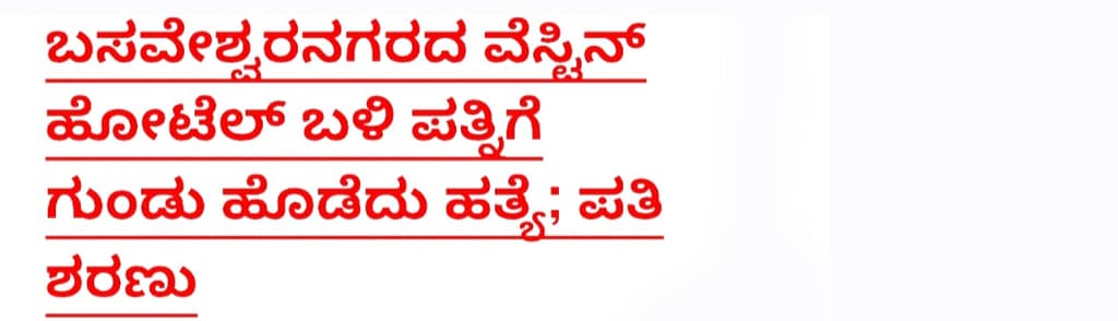 ಬೆಂಗಳೂರು : ಬಸವೇಶ್ವರ ನಗರದ ವೆಸ್ಟಿನ್ ಹೋಟೆಲ್ ಬಳಿ ಪತ್ನಿಯನ್ನು ಗುಂಡಿಟ್ಟು ಕೊಂದ ಪತಿ.! ಪೊಲೀಸ್ ಠಾಣೆಗೆ ತೆರಳಿ ಶರಣಾದ ಪತಿ.!