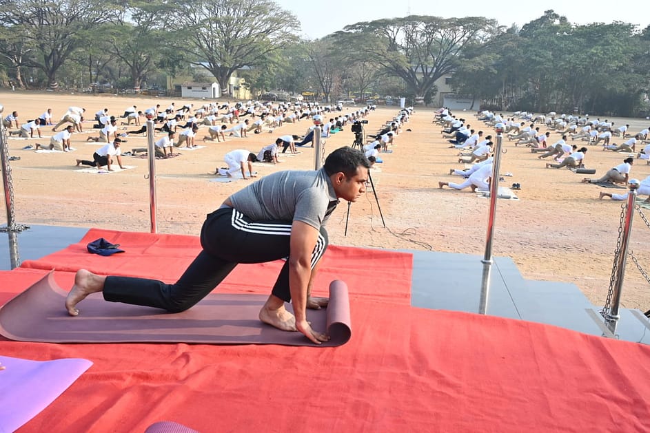 ಅಶ್ವಸೂರ್ಯ/ಶಿವಮೊಗ್ಗ : ಶಿವಮೊಗ್ಗ ಜಿಲ್ಲಾ ಪೊಲೀಸ್ ವತಿಯಿಂದ ಡಿ,5 ರಿಂದ 6 ಮತ್ತು 7 ರವರೆಗೆ ಶಿವಮೊಗ್ಗ ನಗರದ ಡಿಎಆರ್ ಪೊಲೀಸ್ ಪರೇಡ್ ಮೈದಾನದಲ್ಲಿ, ಶಿವಮೊಗ್ಗ ಜಿಲ್ಲಾ ಪೊಲೀಸ್ ಅಧಿಕಾರಿಗಳು ಹಾಗೂ ಸಿಬ್ಬಂದಿಗಳ ದೈಹಿಕ–ಮಾನಸಿಕ ಆರೋಗ್ಯದ ಹಿತ ದೃಷ್ಟಿಯಿಂದ ಆಯೋಜಿಸಲಾಗಿದ್ದ ಮೂರು ದಿನಗಳ ಯೋಗ ಶಿಬಿರವು ಯಶಸ್ವಿಯಾಗಿ ಮುಕ್ತಾಯಗೊಂಡಿತು. ಶಿಬಿರದ ಮೂರನೇ ದಿನವೂ ಪೊಲೀಸ್ ಅಧಿಕಾರಿಗಳು ಹಾಗೂ ಸಿಬ್ಬಂದಿಗಳು ಉತ್ಸಾಹದಿಂದ ಭಾಗವಹಿಸಿದ್ದು,