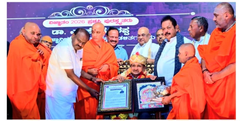 ಅಶ್ವಸೂರ್ಯ/ಮಂಡ್ಯ: ತಾಲೂಕಿನ ಆದಿಚುಂಚನಗಿರಿ ಕ್ಷೇತ್ರದಲ್ಲಿ ಶುಕ್ರವಾರ ನಡೆದ ವಿಜ್ಞಾತಂ ಉತ್ಸವ ಸಮಾರಂಭದಲ್ಲಿ ಖ್ಯಾತ ವಿಜ್ಞಾನಿ ಡಾ.ಎಂ.ಕೆ. ಸೂರಪ್ಪ ಅವರಿಗೆ ಶ್ರೀ ಆದಿಚುಂಚನಗಿರಿ ಕ್ಷೇತ್ರದಿಂದ ವಿಜ್ಞಾತಂ ಪ್ರಶಸ್ತಿ ಪ್ರದಾನ ಮಾಡಿ ಹೆಚ್ಡಿಕೆ ಮಾತನಾಡಿದರು.