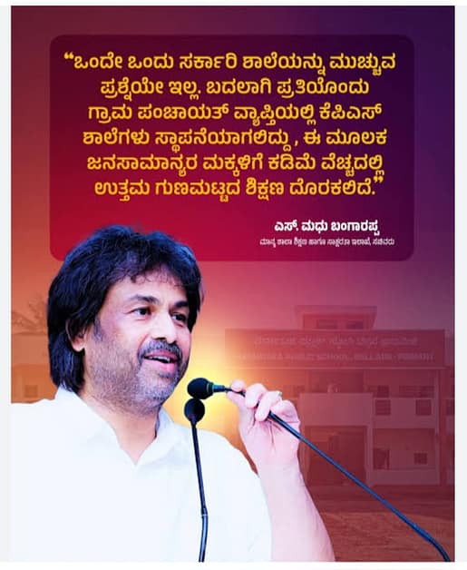 ಕಳೆದ ಈ ಎರಡೂವರೆ ವರ್ಷಗಳಲ್ಲಿ ರಾಜ್ಯದ ಶಿಕ್ಷಣ ಕ್ಷೇತ್ರದಲ್ಲಿ ಅನೇಕ ಕ್ರಾಂತಿಕಾರಿ ಬದಲಾವಣೆಗಳಾಗಿದ್ದೇ ಇದಕ್ಕೆ ಸಾಕ್ಷಿ. ಫಲಿತಾಂಶ ಗುಣಮಟ್ಟ ಸುಧಾರಣೆಗೆ ಜಾರಿಗೆ ಮೂರು ಹಂತದ ಪರೀಕ್ಷಾ ಪದ್ದತಿ, ಕಲಿಕೆಯಲ್ಲಿ ಜಾರಿಗೆ ಬಂದ ಕಟ್ಟುನಿಟ್ಟಿನ ಪದ್ದತಿಗಳು, ವಿದ್ಯಾರ್ಥಿ ಸ್ನೇಹಿ ಸುಧಾರಣೆಗಳಾದ ಮೂರು ಪರೀಕ್ಷಾ ಪದ್ಧತಿ’, ಪಾರದರ್ಶಕತೆಗಾಗಿ ಪರೀಕ್ಷಾ ಕೇಂದ್ರಗಳಲ್ಲಿ ವೆಬ್ ಕಾಸ್ಟಿಂಗ್ ಅಳವಡಿಕೆ ಹಾಗೂ ಎಸ್ ಎಸ್ ಎಲ್ ಸಿ ಮತ್ತು ದ್ವೀತಿಯ ಪಿಯುಸಿ ತೇರ್ಗಡೆ ಅಂಕಗಳನ್ನು ಶೇ. ೩೫ ರಿಂದ ಶೇ. ೩೩ಕ್ಕೆ ಇಳಿಸಿರುವುದು ಇಳಿಸಿರುವುದು ಲಕ್ಷಾಂತರ ವಿದ್ಯಾರ್ಥಿಗಳ ಭವಿಷ್ಯಕ್ಕೆ ದಾರಿದೀಪವಾಗಿದೆ. ಸಮಾಜದ ಹಿಂದುಳಿದ, ಅಲ್ಪಸಂಖ್ಯಾತ ಮತ್ತು ಅರ್ಥಿಕವಾಗಿ ದುರ್ಬಲ ವರ್ಗದ ಮಕ್ಕಳಿಗೆ ಗುಣಮಟ್ಟದ ಶಿಕ್ಷಣ, ಪೌಷ್ಠಿಕ ಆಹಾರ ಮತ್ತು ಮೂಲಭೂತ ಸೌಕರ್ಯಗಳೊಂದಿಗೆ ಖಾಸಗಿ ಶಾಲೆಗಳಿಗೂ ಕಡಿಮೆ ಇಲ್ಲದಂತೆ ಶಿಕ್ಷಣ ನೀಡುವ ಉದ್ದೇಶದೊಂದಿಗೆ ಕೆಪಿಎಸ್ ಶಾಲೆಗಳನ್ನು ಆರಂಭಿಸಿರುವುದು ರಾಜ್ಯದ ಶಿಕ್ಷಣ ಇಲಾಖೆ ಇತಿಹಾಸದಲ್ಲಿಯೇ ಮಹತ್ತರ ಮೈಲಗಲ್ಲು. ಅದರ ಹೆಗ್ಗಳಿಕೆ ಸಚಿವ ಮಧು ಬಂಗಾರಪ್ಪ ಅವರದ್ದು.