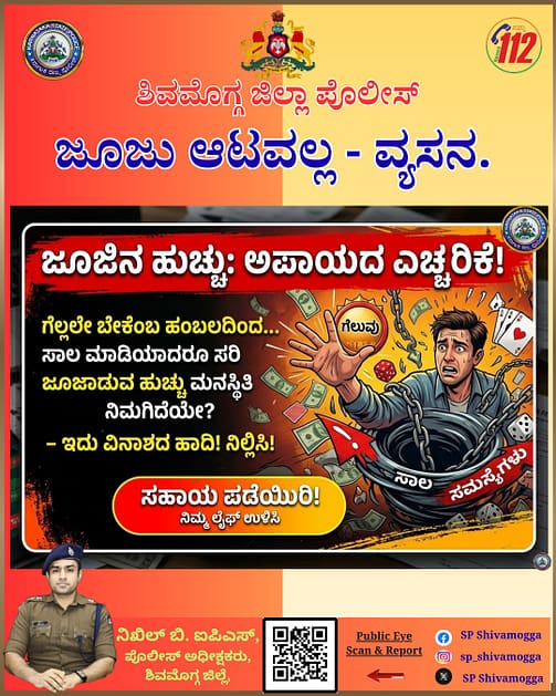 ಶಿವಮೊಗ್ಗ ಜಿಲ್ಲಾ ಪೊಲೀಸ್ ಇಲಾಖೆ ಜೂಜಾಟದ ಬಗ್ಗೆ ದೊಡ್ಡ ಎಚ್ಚರಿಕೆಯ ಗಂಟೆಯನ್ನು ಬಾರಿಸಿದೆ. ಎಚ್ಚರಿಕೆಯ ಫಲಕಗಳು ವಾಟ್ಸ್ ಆಪ್ ಗ್ರೂಪ್ಗಳಲ್ಲಿ ರಾರಾಜಿಸಿವೆ ಹೊರತು ಅದು ಕಾರ್ಯ ರೂಪಕ್ಕೆ ಬಾರದೆ ಹೊಳೆಹೊನ್ನೂರಿನ ಅಂದರ್ ಬಾಹರ್ ಇಸ್ಪೀಟ್ ಅಡ್ಡೆಗಳಲ್ಲಿ ಒಳಗೆ ಹೊರಗೆ ಎನ್ನುವ ಧ್ವನಿ ಠಾಣೆಯ ಗೊಡೆಗೆ ಬಡಿದು ಪ್ರತಿಧ್ವನಿಸುತ್ತಿದ್ದರು ಪೊಲೀಸರು ನಿದ್ರೆಗೆ ಜಾರಿದ್ದಾರೆ.! ರಾಜ ರೋಷವಾಗಿ ಲಕ್ಷಾಂತರ ರೂಪಾಯಿ ಹಣ ಅಂದರ್ ಬಾಹರ್ ಇಸ್ಪೀಟ್ ಅಡ್ಡೆಗಳಲ್ಲಿ ಬಿಕರಿಯಾಗುತ್ತಿದೆ ಜೊತೆಗೆ ಜೂಜಿನಡ್ಡೆಯ ದಾಸರಾದ ಅಮಾಯಕ ಮಂದಿ ಹಣ ಕಳೆದುಕೊಂಡು ಬಿದಿಗೆ ಬೀಳುತ್ತಿದ್ದಾರೆ.! ಇದು ದುರಂತವೆ ಹೌದು ಇನ್ನಾದರು ಹಿರಿಯ ಪೊಲೀಸ್ ಅಧಿಕಾರಿಗಳು ಅದರಲ್ಲೂ ಖಡಕ್ ಅಧಿಕಾರಿಯಾಗಿರುವ ಜಿಲ್ಲಾ ರಕ್ಷಣಾಧಿಕಾರಿಗಳಾದ ನಿಖಿಲ್ ಅವರು ಈ ಕೂಡಲೇ ಈ ಅಂದರ್ ಬಾಹರ್ ಅಡ್ಡದ ಜೂಜುಕೋರ ಖದೀಮರನ್ನು ಮಟ್ಟಹಾಕಿ ಕಾನೂನಿನ ಅರಿವು ಮೂಡಿಸಬೇಕಿದೆ.ಜೂಜಾಟದ ದಾಸರಾಗಿರುವ ಅಮಾಯಕ ಮಂದಿಯ ಬಾಳಿಗೆ ಬೆಳಕಾಗಬೇಕಿದೆ.