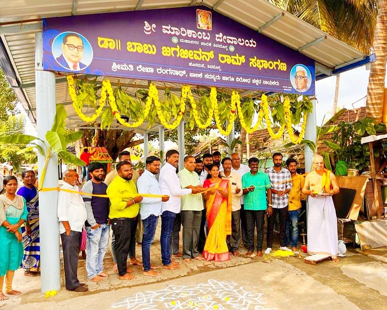 ಶಿವಮೊಗ್ಗ ನಗರದ ಹೊಸಮನೆ ಬಡಾವಣೆಯ ಡಾ. ಬಿ.ಆರ್. ಅಂಬೇಡ್ಕರ್ ಸಮುದಾಯ ಭವನದ ಹತ್ತಿರವಿರುವ ಅರಳಿಮರ ಶ್ರೀ ಮಾರಿಕಾಂಬ ದೇವಾಲಯದ ಮುಂಭಾಗದಲ್ಲಿ ಮಹಾನಗರ ಪಾಲಿಕೆಯ ಅನುದಾನದಲ್ಲಿ ನೂತನವಾಗಿ ನಿರ್ಮಿಸಲಾಗಿರುವ ಡಾ. ಬಾಬು ಜಗಜೀವನ್ ರಾಮ್ ಸಭಾಂಗಣದ ಉದ್ಘಾಟನೆಯನ್ನು ಇಂದು ಬಡಾವಣೆ ಹಿರಿಯರು ಹಾಗೂ ವಿಧಾನ ಪರಿಷತ್ತಿನ ಮಾಜಿ ಸದಸ್ಯರಾದ ಆರ್.ಪ್ರಸನ್ನ ಕುಮಾರ್ ನೆರವೇರಿಸಿದರು