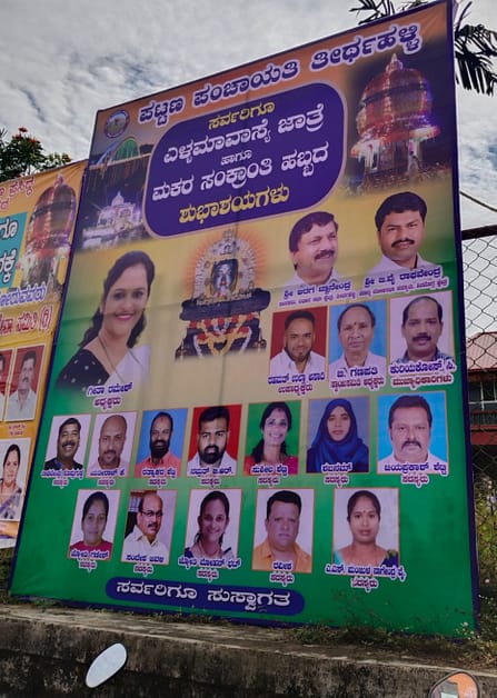 ತೀರ್ಥಹಳ್ಳಿ ಪಟ್ಟಣ ಪಂಚಾಯತಿ ವತಿಯಿಂದ ತೀರ್ಥಹಳ್ಳಿಯ ಪ್ರಸಿದ್ಧ ಎಳ್ಳಮಾವಾಸ್ಯೆ ಮತ್ತು ಮಕರಸಂಕ್ರಾಂತಿ ಹಬ್ಬಕ್ಕೆ ಸಮಸ್ತ ಜನತೆಗೆ ಶುಭಾಶಯವನ್ನು ಕೋರಿ ತೀರ್ಥಹಳ್ಳಿ ಪಟ್ಟಣದಲ್ಲಿ ಪಟ್ಟಣ ಪಂಚಾಯತಿ ವತಿಯಿಂದ ನಗರದ ಮುಖ್ಯ ರಸ್ತೆಯಲ್ಲಿ ಫ್ಲಕ್ಸ್ ಅನ್ನು ಹಾಕಲಾಗಿದ್ದು ಶಿಷ್ಟಾಚಾರದ ( protocol ) ನಿಯಮದಂತೆ
