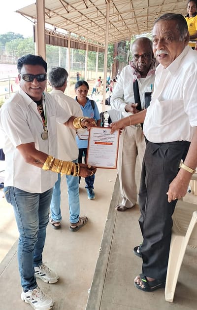 ತಮಿಳುನಾಡಿನ ತಿರುನಲ್ವೇಲಿಯಲ್ಲಿ ನಡೆದ ರಾಷ್ಟ್ರೀಯ ಮಾಸ್ಟರ್ಸ್ ಅಥ್ಲೆಟಿಕ್ಸ್ ಚಾಂಪಿಯನ್ ಶಿಪ್ ನಲ್ಲಿ ಶಿವಮೊಗ್ಗದ ಹೆಮ್ಮೆಯ ಹಿರಿಯ ಅಥ್ಲೆಟಿಕ್ಸ್ ರಾಜಿಮೋನ್ ಮೀಠಲ್ ( ಬಂಗಾರದ ಮನುಷ್ಯ ) ಗೆ ಚಿನ್ನದ ಪದಕ