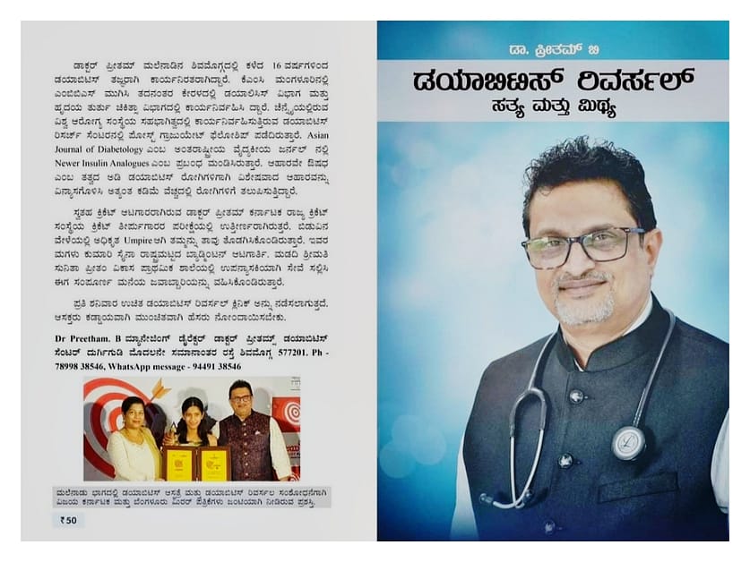 ಡಯಾಬಿಟಿಸ್ ರಿವರ್ಸಲ್- ಸತ್ಯ ಮತ್ತು ಮಿಥ್ಯ ಪುಸ್ತಕದ ಲೇಖಕರು ಡಾ. ಪ್ರೀತಮ್