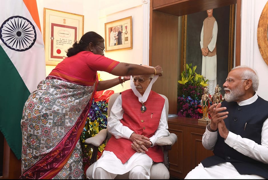 ಮಾಜಿ ಪ್ರಧಾನಿಗಳಾದ ಚೌಧರಿ ಚರಣ್ ಸಿಂಗ್, ಪಿ.ವಿ. ನರಸಿಂಹ ರಾವ್, ಕೃಷಿ ವಿಜ್ಞಾನಿ ಎಂ.ಎಸ್. ಸ್ವಾಮಿನಾಥನ್ ಮತ್ತು ಬಿಹಾರದ ಮಾಜಿ ಮುಖ್ಯಮಂತ್ರಿ ಕರ್ಪೂರಿ ಠಾಕೂರ್ ಅವರಿಗೆ ಮರಣೋತ್ತರವಾಗಿ ‘ಭಾರತ ರತ್ನ’ ಪ್ರಶಸ್ತಿಗಳನ್ನು ಶನಿವಾರ ಪ್ರದಾನ ಮಾಡಲಾಗಿತ್ತು. ಅನಾರೋಗ್ಯದ ಕಾರಣ ನಿನ್ನೆ ನಡೆದ ಸಮಾರಂಭದಲ್ಲಿ ಭಾರತ ರತ್ನ ಪ್ರಶಸ್ತಿ ಸ್ವೀಕರಿಸಲು ಅಡ್ವಾಣಿ ಕಾರ್ಯಕ್ರಮಕ್ಕೆ ಹೋಗಲು ಸಾಧ್ಯವಾಗಿರಲಿಲ್ಲ ಎಂದು ತಿಳಿದುಬಂದಿತ್ತು.ಅಡ್ವಾಣಿ ಅವರ ಮನೆಗೆ ಬಂದು ರಾಷ್ಟ್ರಪತಿ ದ್ರೌಪದಿ ಮುರ್ಮು ಅವರು ಪ್ರಶಸ್ತಿಯನ್ನು ಪ್ರಧಾನ ಮಾಡುವ ಸಮಯದಲ್ಲಿ