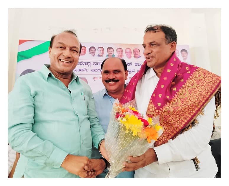 ಕರ್ನಾಟಕ ಪ್ರದೇಶ ಭಾರತೀಯ ರಾಷ್ಟ್ರೀಯ ಕಾಂಗ್ರೆಸ್ ಪಕ್ಷದ ನೂತನ ಕಾರ್ಯಾಧ್ಯಕ್ಷರು ವಿಧಾನ ಪರಿಷತ್ ಸದಸ್ಯರು ಮಂಜುನಾಥ ಭಂಢಾರಿ ಅವರನ್ನು ಗೌರವಿಸಿ ಅಭಿನಂದನೆಗಳು ಸಲ್ಲಿಸಿದ ರಾಜ್ಯ ಕಾಂಗ್ರೆಸ್ ಸಹಕಾರ ವಿಭಾಗದ ಸಂಚಾಲಕರು ಮಲೆನಾಡು ಅಭಿವೃದ್ಧಿ ಮಂಡಳಿ ಮತ್ತು ಡಿಸಿಸಿ ಬ್ಯಾಂಕ್ ಅಧ್ಯಕ್ಷರು ಡಾ ಆರ್ ಎಂ ಮಂಜುನಾಥಗೌಡ ಅವರು ಜಿಲ್ಲಾ ಕಾಂಗ್ರೆಸ್ ಅಧ್ಯಕ್ಷರು ಹೆಚ್ಎಸ್ ಸುಂದರೇಶ್ ಇದ್ದರು