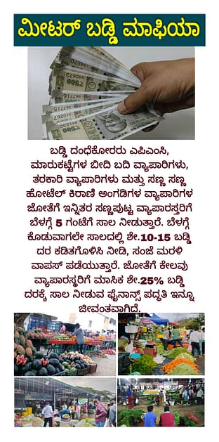 ಮೀಟರ್ ಬಡ್ಡಿ ದಂಧೆಯ ಸುಳಿಗೆ ಸಿಲುಕುವ ಸಣ್ಣಪುಟ್ಟ ವ್ಯಾಪಾರಿಗಳು ದುಡಿದ ಹಣವನ್ನೇಲ್ಲ ಬಡ್ಡಿಯ ರೂಪದಲ್ಲಿ ಕಟ್ಟಿ ಆರ್ಥಿಕ ಸಂಕಷ್ಟದಲ್ಲಿ ಸಿಲುಕಿದ್ದ ಅದೇಷ್ಟೋ ಮಂದಿ ಸಣ್ಣ ವ್ಯಾಪಾರಿಗಳು ವ್ಯಾಪಾರಕ್ಕೆ ಕುಟುಂಬ ನಿರ್ವಹಣೆಗೆಂದು ಸಾಲ ಪಡೆದು ಭಯ ಹುಟ್ಟಿಸುವ ಬಡ್ಡಿ ಕಟ್ಟಲಾಗದೆ ತೀವ್ರ ಸಂಕಷ್ಟಕ್ಕೀಡಾಗಿದ್ದಾರೆ. ಕೆಲವೆಡೆ ಮೀಟರ್ ಬಡ್ಡಿ ದಂಧೆಯ ತೀವ್ರತೆಗೆ ಸಾವಿನ ಪ್ರಕರಣಗಳು ನಿತ್ಯ ವರದಿಯಾಗುತ್ತಿದೆ.