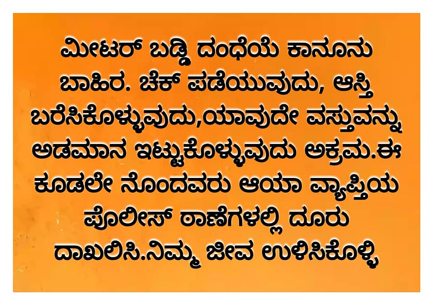 ಒಟ್ಟಿನಲ್ಲಿ ಬೆಂಗಳೂರು, ಶಿವಮೊಗ್ಗ, ಭದ್ರಾವತಿ ಹಾಗೂ ಇನ್ನಿತರ ಜಿಲ್ಲೆಗಳಲ್ಲಿ ಮೀಟರ್ ಬಡ್ಡಿ ಮಾಫಿಯಾ ಭರ್ಜರಿಯಾಗಿ ನೆಡೆಯುತ್ತಿದ್ದು ಸಂಬಂಧ ಪಟ್ಟ ಅಧಿಕಾರಿಗಳು ಈ ಮೀಟರ್ ಬಡ್ಡಿ ಮಾಫಿಯಾದ ಕಿಂಗ್ ಪಿನ್ ಗಳನ್ನು ಮಟ್ಟಹಾಕಬೇಕಿದೆ ಅದರಲ್ಲೂ ಶಿವಮೊಗ್ಗ ಮೀಟರ್ ಬಡ್ಡಿ ಮಾಫಿಯಾದ ಕೇಂದ್ರ ಬಿಂದುವಾಗಿದೆ.ಈ ಮೀಟರ್ ಬಡ್ಡಿ ಮಾಫಿಯಾದವರ ಸುಳಿಗೆ ಸಿಲುಕಿ ಅದೆಷ್ಟೋ ಜೀವಗಳು ಬದುಕಿನ ನಡು ಹಾದಿಯಲ್ಲೆ ಸುಡುಗಾಡು ಸೇರಿವೆ ಅಮಾಕ ಮಂದಿಯ ಆಸ್ತಿಪಾಸ್ತಿಯನ್ನು ಮೀಟರ್ ಬಡ್ಡಿಯ ಹೆಸರಿನಲ್ಲಿ ನುಂಗಿ ನೀರು ಕುಡಿದಿರುವ ಖದೀಮ ದಂಗೆಕೋರರ ದಂಡೆ ಶಿವಮೊಗ್ಗ ನಗರದಲ್ಲಿ ಬಿಡು ಬಿಟ್ಟಿದೆ ಇನ್ನಾದರು ಎಚ್ಚೆತ್ತುಕೊಂಡು ಅಧಿಕಾರಿಗಳು ಈ ಮೀಟರ್ ಬಡ್ಡಿ ಮಾಫಿಯಾದ ನಡು ಮುರಿಯಬೇಕಿದೆ….