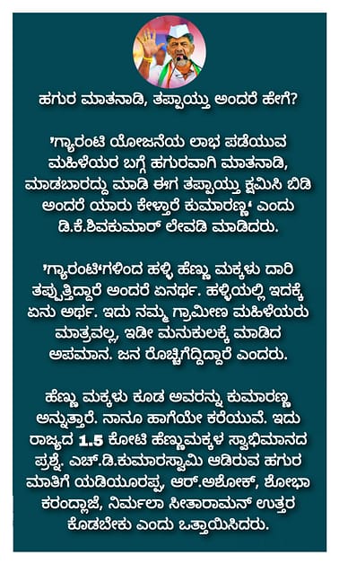ನಮ್ಮ ಗ್ಯಾರಂಟಿ (ಪ್ರಣಾಳಿಕೆ) ನಿಜ, ಬಿಜೆಪಿಯವರ ಭರವಸೆ ಬರೀ ಸುಳ್ಳು ಎಂದು ವಾಗ್ದಾಳಿ ನಡೆಸಿದ ಅವರು, ’ನಮ್ಮದು ಜನರ ಬದುಕಿನ ಪ್ರಶ್ನೆಯಾದರೆ, ಅವರು ಜನರ ಭಾವನೆಗಳ ಮೇಲೆ ಮತ ಕೇಳುತ್ತಿದ್ದಾರೆ‘ ಎಂದು ಹರಿಹಾಯ್ದರು.