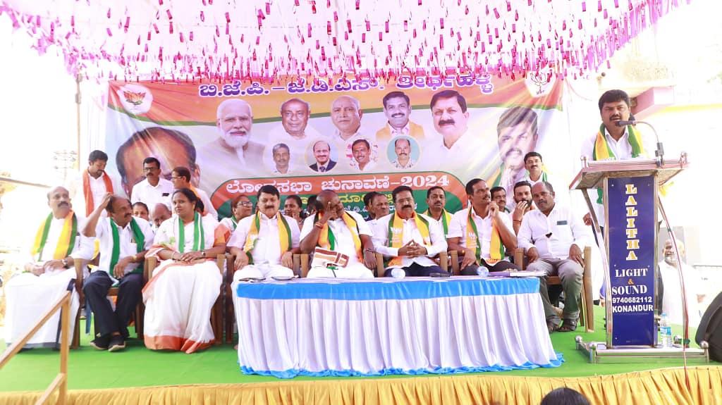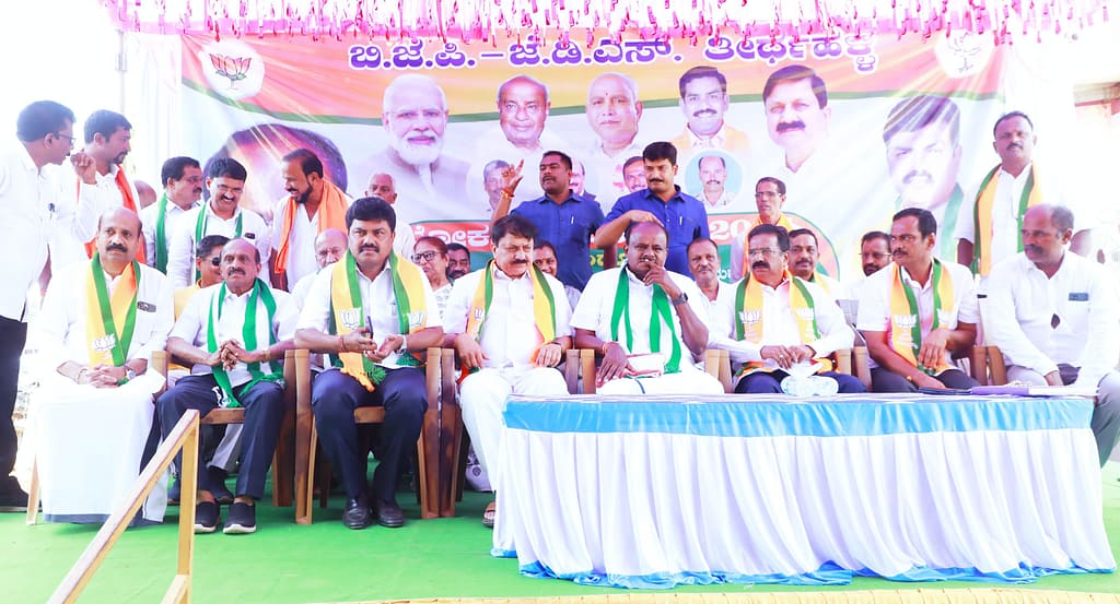 ಅಶ್ವಸೂರ್ಯ/ಶಿವಮೊಗ್ಗ: ಲೋಕಸಭಾ ಸಾರ್ವತ್ರಿಕ ಚುನಾವಣೆ ನಿಮಿತ್ತ ತಾಲ್ಲೂಕಿನ ಆರಗ ಮಹಾ ಶಕ್ತಿಕೇಂದ್ರ ವ್ಯಾಪ್ತಿಯ ಕೋಣಂದೂರು ಭಾಗದಲ್ಲಿ ಭಾರತೀಯ ಜನತಾ ಪಕ್ಷ ತೀರ್ಥಹಳ್ಳಿ ಮಂಡಲ ಇಂದು ಜೆಡಿಎಸ್ ಸಹಯೋಗದೊಂದಿಗೆ ಆಯೋಜಿಸಿದ್ಧ ಬ್ರಹತ್ “ಸಾರ್ವಜನಿಕ ಸಭೆ” ಯಲ್ಲಿ ನಿಕಟ ಪೂರ್ವ ಮುಖ್ಯಮಂತ್ರಿಗಳಾದ ಶ್ರೀ ಎಚ್.ಡಿ. ಕುಮಾರಸ್ವಾಮಿ ಅವರೊಂದಿಗೆ ಭಾಗಿಯಾಗಿ ಚುನಾವಣಾ ಪ್ರವಾಸ ಕೈಗೊಳ್ಳಲಾಯಿತು.