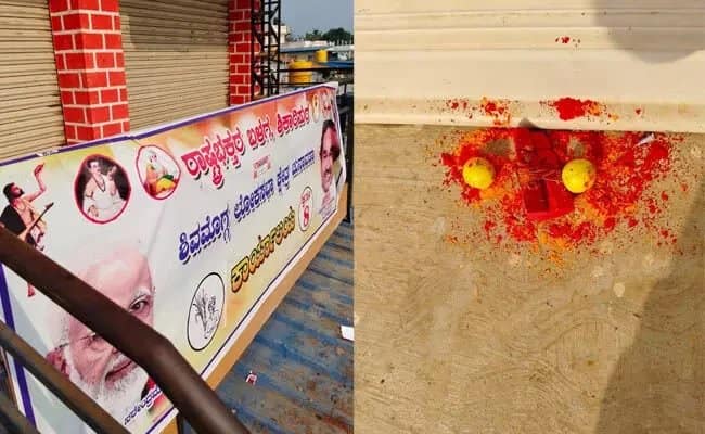 ಶಿಕಾರಿಪುರದಲ್ಲಿ ಪಕ್ಷೇತರ ಅಭ್ಯರ್ಥಿ ಕೆ.ಎಸ್.ಈಶ್ವರಪ್ಪ ಕಚೇರಿಯ ಬಾಗಿಲಲ್ಲಿ ವಾಮಾಚಾರ.!!