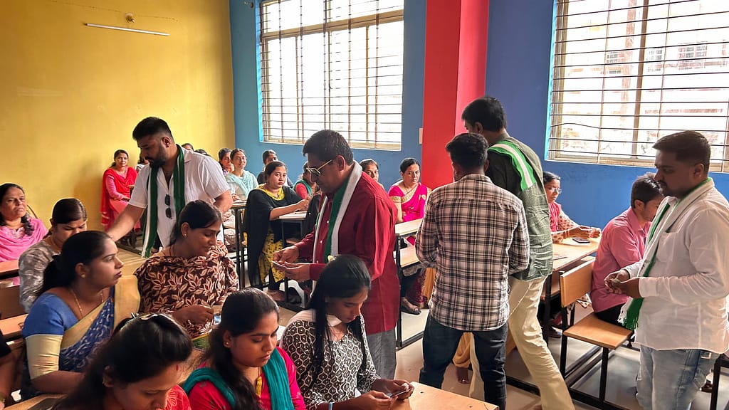 ಶಿವಮೊಗ್ಗ: ಕರ್ನಾಟಕ ವಿಧಾನಪರಿಷತ್ ಚುನಾವಣೆ ನೈರುತ್ಯ ಶಿಕ್ಷಕರ ಕ್ಷೇತ್ರದ ಬಿಜೆಪಿ ಬೆಂಬಲಿತ ಜೆಡಿಎಸ್ ಅಭ್ಯರ್ಥಿ ಶ್ರೀ ಎಸ್ ಎಲ್ ಬೋಜೆ ಗೌಡ ರವರ ಪರವಾಗಿ ನಗರದ ಮಾಜಿ ಶಾಸಕರು ರಾಜ್ಯ ಜೆಡಿಎಸ್ ಉಪಾಧ್ಯಕ್ಷರು ಆದ ಶ್ರೀ ಕೆ ಬಿ ಪ್ರಸನ್ನ ಕುಮಾರ್ ರವರು ಇಂದು ನಗರದ ಅನನ್ಯ ಶಾಲೆಗೆ ಭೇಟಿ ನೀಡಿ ಮತಯಾಚನೆ ಮಾಡಿದರು.
