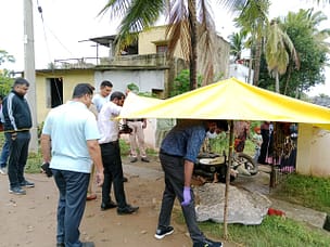 ಹತ್ಯೆಯಾದ ಸ್ಥಳವನ್ನು ಪರಿಶೀಲಿಸುತ್ತಿರುವ ಹಿರಿಯ ಪೋಲಿಸ್ ಅಧಿಕಾರಿಗಳು