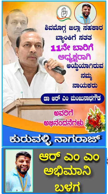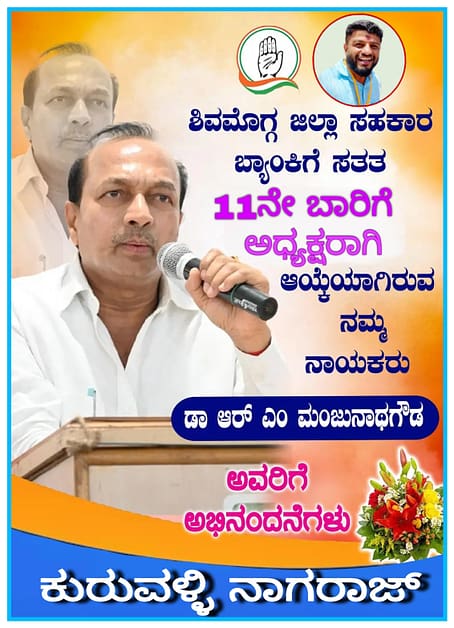 11ನೇ ಬಾರಿಗೆ ಡಿಸಿಸಿ ಬ್ಯಾಂಕ್ ಅಧ್ಯಕ್ಷರಾಗಿ ಇತಿಹಾಸ ನಿರ್ಮಿಸಿದ ಆರ್ ಎಂ ಮಂಜುನಾಥ್ ಗೌಡರಿಗೆ ಅಭಿನಂದನೆ : ಕುರುವಳ್ಳಿ ನಾಗರಾಜ್, ಜಿಲ್ಲಾ ಪ್ರಧಾನ ಕಾರ್ಯದರ್ಶಿ. ಯುವ ಕಾಂಗ್ರೆಸ್, ತೀರ್ಥಹಳ್ಳಿ