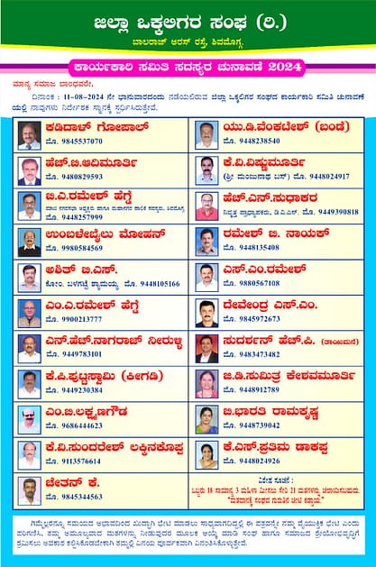 ಮಾನ್ಯ ಒಕ್ಕಲಿಗ ಸಮಾಜ ಬಾಂಧವರೇ ನಿಮ್ಮ ಅಮೂಲ್ಯವಾದ ಮತವನ್ನು ಈ ಮೇಲ್ಕಂಡ ಅಭ್ಯರ್ಥಿಗಳಿಗೆ ನೀಡುವ ಮೂಲಕ ಸಮುದಾಯದ ಸೇವೆಗೆ ಅವಕಾಶ ಕಲ್ಪಿಸಿ ಕೊಡಬೇಕಾಗಿ ತಮ್ಮಲ್ಲಿ ವಿನಂತಿಸಿದ್ದಾರೆ.
