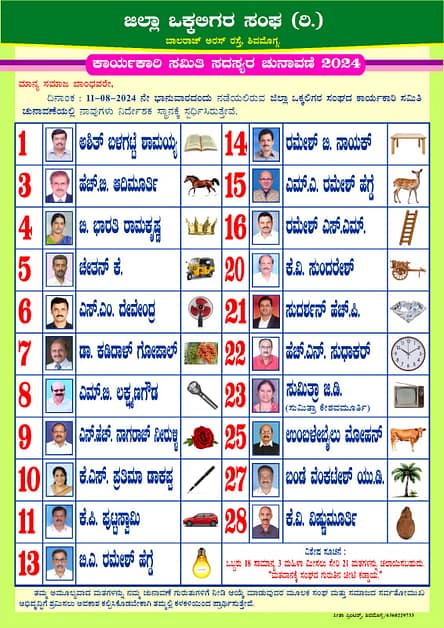 ಮಾನ್ಯ ಒಕ್ಕಲಿಗ ಸಮಾಜ ಬಾಂಧವರೇ ನಿಮ್ಮ ಅಮೂಲ್ಯವಾದ ಮತವನ್ನು ಈ ಮೇಲ್ಕಂಡ ಅಭ್ಯರ್ಥಿಗಳಿಗೆ ನೀಡುವ ಮೂಲಕ ಸಮುದಾಯದ ಸೇವೆಗೆ ಅವಕಾಶ ಕಲ್ಪಿಸಿ ಕೊಡಬೇಕಾಗಿ ತಮ್ಮಲ್ಲಿ ವಿನಂತಿಸಿಕೊಳ್ಳುತ್ತೇವೆ.