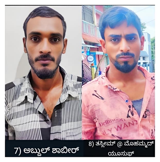 4) ಜಾಫರ್ ಸಾದಿಕ್, 20 ವರ್ಷ, ಟಿಪ್ಪುನಗರ ಶಿವಮೊಗ್ಗ ಟೌನ್, 5) ಸೈಯದ್ ರಾಜೀಕ್ @ ರಾಜಿಕ್ 28 ವರ್ಷ, ಟಿಪ್ಪುನಗರ ಶಿವಮೊಗ್ಗ ಟೌನ್, 6) ಮೊಹಮ್ಮದ್ ಶಾಬಾಜ್ @ ಶಾಬು 19 ವರ್ಷ, ಟಿಪ್ಪುನಗರ ಶಿವಮೊಗ್ಗ ಟೌನ್, 7) ಅಬ್ದುಲ್ ಶಾಬೀರ್ @ ಶಾಬಿರ್ 24 ವರ್ಷ, ಟಿಪ್ಪುನಗರ ಶಿವಮೊಗ್ಗ ಟೌನ್, 8) ತಸ್ಲೀಂ @ ಮೊಹಮ್ಮದ್ ಯೂಸೂಫ್, 26 ವರ್ಷ, ಟಿಪ್ಪುನಗರ ಶಿವಮೊಗ್ಗ ಟೌನ್